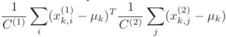 클러스터 k에 대해서 두 이미지의 descriptors 집합을 (즉 각 k번째 차원의 값을) xk(1) xk(2)라고 했을 때 두 벡터간의 유사도는 다음과 같이 계산됩니다.