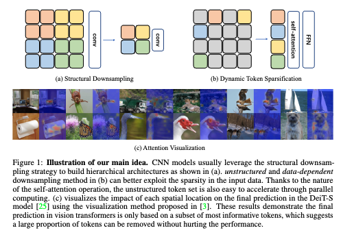 서두 내용만 들으시면 트랜스포머는 당연히 가변길이 토큰 시퀀스를 처리할 수 있고 이거를 토큰 프루닝에 활용하는 것은 당연한게 아닌가? 라는 생각이 들 수 있습니다. 최근의 토큰 프루닝 관련 연구들은 이 특성을 당연한 전제 조건으로 여기고 토큰 프루닝을 적용해 단순히 ViT의 효율성을 높이는 데 집중합니다. 하지만 이 논문이 2021년에 발표되었다는 점을 감안하면 당시에는 ViT의 근본적인 메커니즘을 CNN의 효율적인 계층 구조와 연결하여 토큰 프루닝이라는 새로운 가속화 방향을 처음으로 구체화했다는 점에서 그 당시에는 새로운 접근이지 않았나 싶습니다.