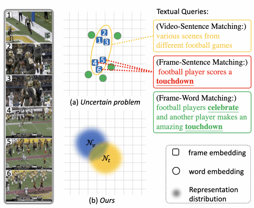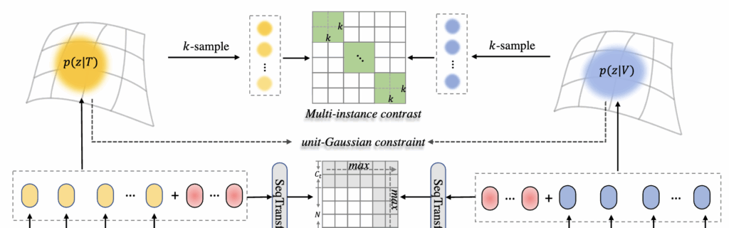 즉, 하나의 텍스트–비디오 쌍으로부터 여러 확률적 표현을 만들어 ‘한 문장이 여러 비디오 묘사를 가질 수 있다’는 현실적인 관계를 시뮬레이션하는 것이라고 이해하면 좋을 것 같네요.