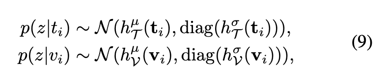 상단 수식에서 h_T와 h_V는 텍스트·비디오 인코더의 출력에 따라 평균과 분산을 계산하는 두 개의 독립적인 헤드 네트워크입니다.