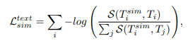 이 Loss는 텍스트-텍스트 유사도와 텍스트-이미지 유사도를 기반으로 Contrastive Loss를 적용합니다. 텍스트-텍스트 Loss가 언어적 의미의 일치를 학습하고 텍스트-이미지 Loss는 시각적 대응을 잘 유지할 수 있도록 학습하는 것이기 때문에 일반적인 Contrastive Loss를 조금 더 강화하는 효과를 갖습니다.