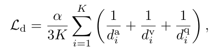 단일 모달과 다중 모달 로짓 간의 불일치를 확대한다고 합니다. 이를 위해 불일치 확대 손실을 만들고 역거리의 합으로 정의된다고 합니다.