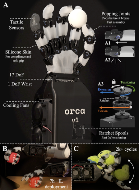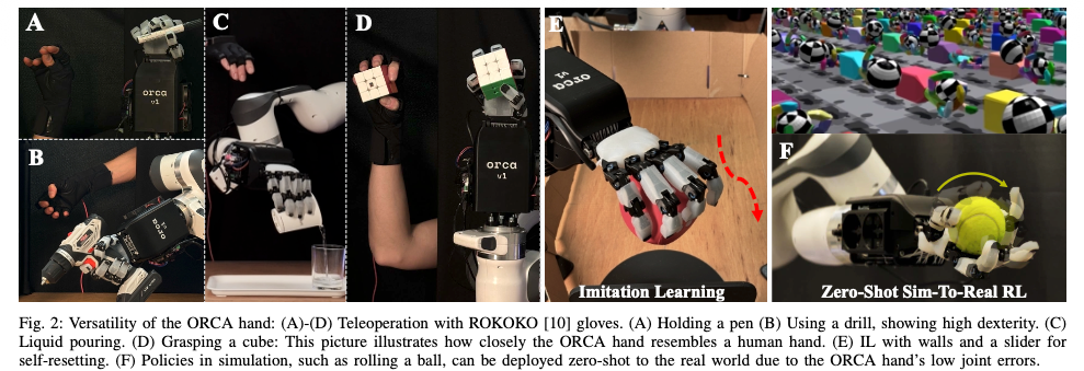 Orca-hand는 이 논문을 통해 teleoperation, imitation-learning, reinforcement learning 등 다양한 분야에서 활용이 가능함을 입증하였고, 20시간 구동을 통해서 장시간 구동에도 문제가 없다는 것을 보였습니다.