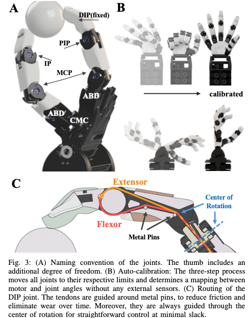 따라서 이 논문에서는 위의 문제를 해결하기 위해서 open source 17-DOF, tendon-driven hand인 ORCA-Hand를 제공합니다. 또한 뒤에서 설명하겠지만 popping joint, auto-calibration 등을 제공하여 복잡성을 줄이면서 신뢰성, 강건성을 확보했다고 합니다. (가격도 합리적이라고 합니다.)