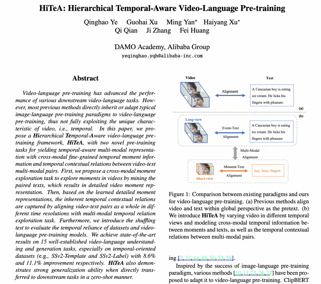 - Title: HiTeA: Hierarchical Temporal-Aware Video-Language Pre-training