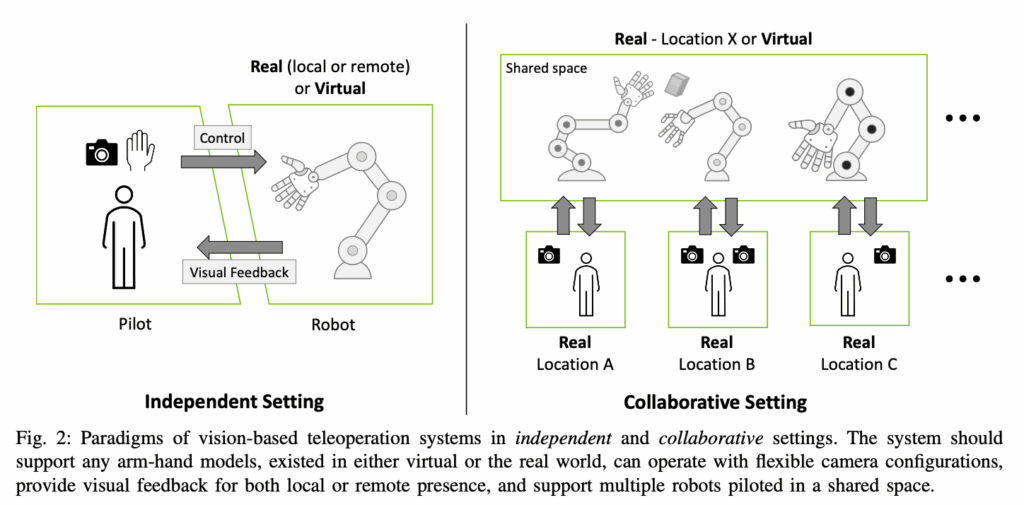 하지만 현재 vision based teleoperation system에는 robot teaching 을 위한 data 수집과 규모를 확장하는데 있어서 다음과 같은 미흡한 점이 있다고 합니다.