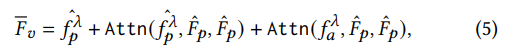결과적으로 소리와 시각적 공간적 연관성을 고려해 선택된 병합 토큰과 오디오 특징 사이의 cross-modal attention 을 수행합니다. 정규화된 형태의 feature는 다음과 같습니다.