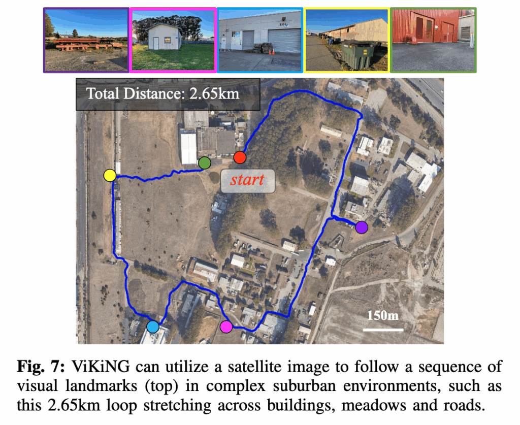 저자는 교외(suburban) 환경 테스트에서는 5개의 landmark 이미지를 순차적으로 방문하는 visual inspection task를 수행하였습니다. 위 fig같은 경우를 보면 로봇이 각 랜드마크에 안정적으로 잘 도달 하는 결과를 보입니다.(인간의 개입이 단 한번도 없었다고 합니다.)