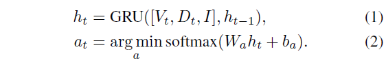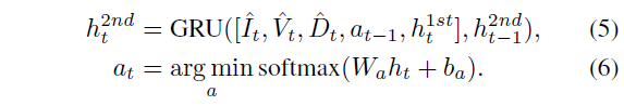 이후 2번째 GRU에서 아래 수식과 같이 입력 특징들과 예측된 액션 값 등을 concat하여 최종 action을 추론합니다.