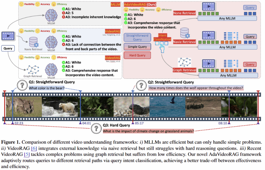 본 연구는 영상 데이터에 최적화된 RAG 기술을 개발하고자 하는 기존 연구의 문제점을 계승하나, Long video와 복잡한 질의에도 정확도 높게 동작하는 기술을 위해 비디오의 길이와 질문에 난의도에 맞도록 동작하는 적응적 RAG 기술을 제안한다.