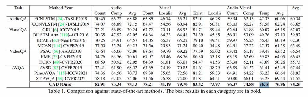 저자는 AVQA task 에서 CAD라는 네트워크를 제안하며 위에서 언급한 3가지 방법으로 문제를 해결합니다.