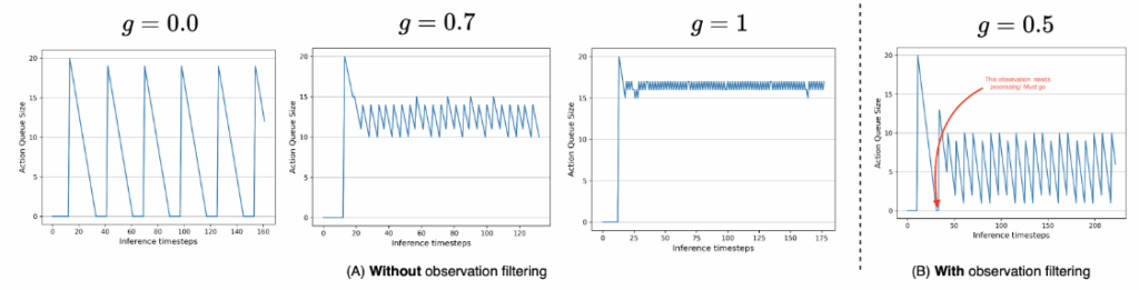 결과적으로 이 g 값(남은 action 비율)이 0.7 정도가 되는 것이 계산량과 동작의 흐름이 괜찮다고 합니다. 또한 observation filtering을 통해서 상황 변화가 없는 경우에는 컴퓨팅 자원을 획기적으로 줄일 수 있다고 합니다.