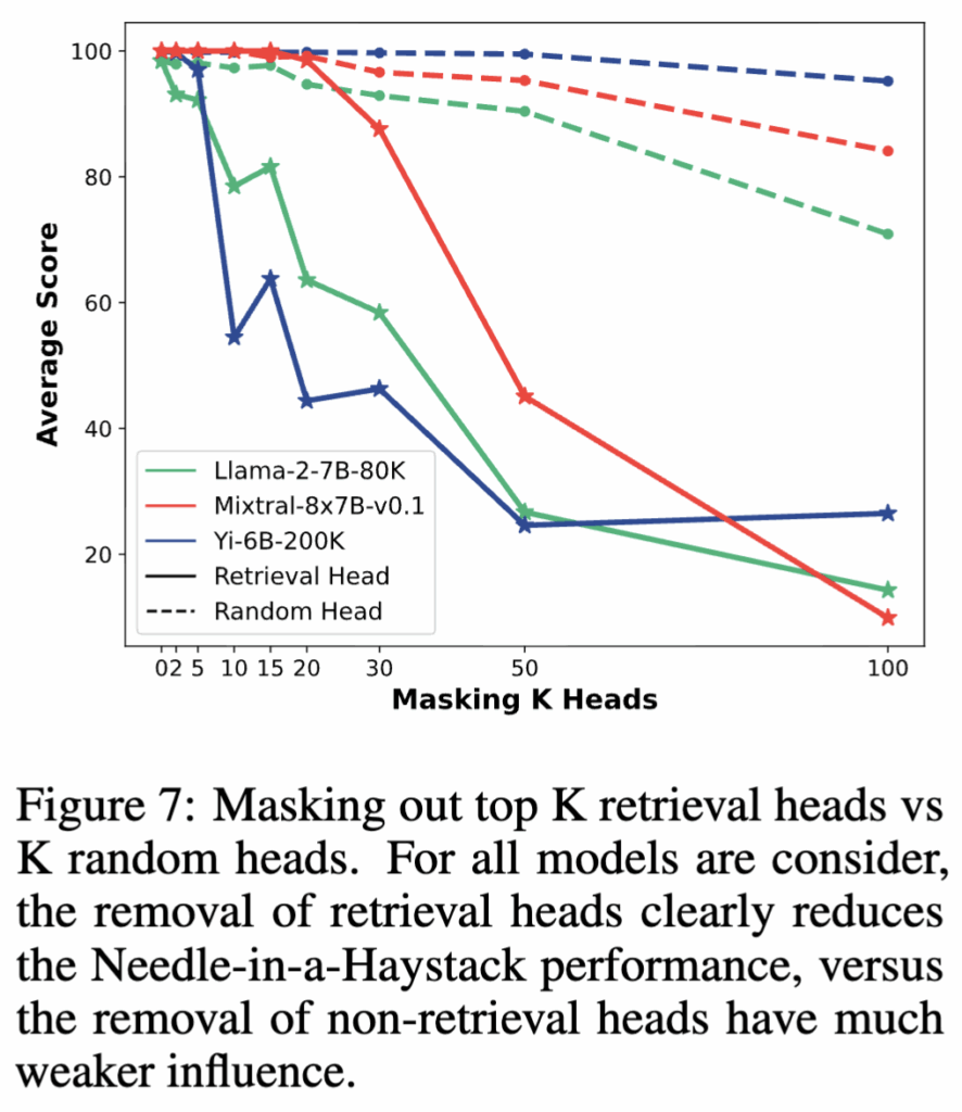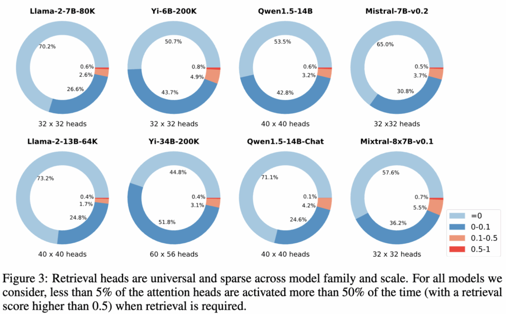 - Universal & Sparse: 롱컨텍스트 능력이 있는 모델이라면 소수의 retrieval head가 존재한다.