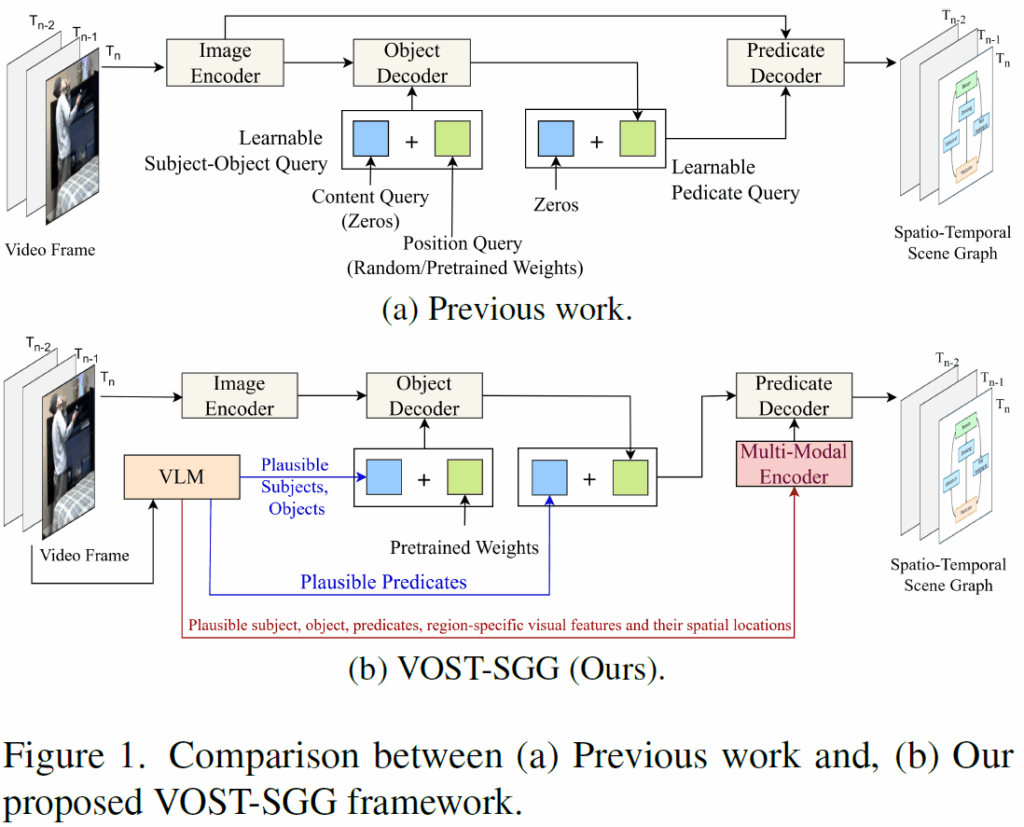 이를 해결하기 위해 저자들은 VLM을 활용한 VOST-SGG(VLM-aided One-stage ST-SGG) 프레임워크를 제안합니다. 개선점은 크게 2가지입니다.