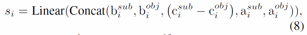 위 수식에서 b,c,a는 각각 bounding box 좌표, 센터 좌표, subject 및 object bounding box의 면적을 나타냅니다.