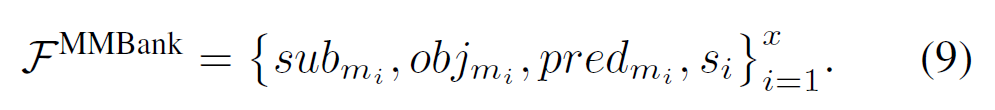 그리고 아래 식(9)와 같이 시각, 텍스트, 공간적 특징을 사용하여 multimodal feature bank {F}^{MMBank}를 형성하고, 이후 멀티모달 인코더에서 MHSA을 거쳐 멀티모달 임베딩을 형성합니다.