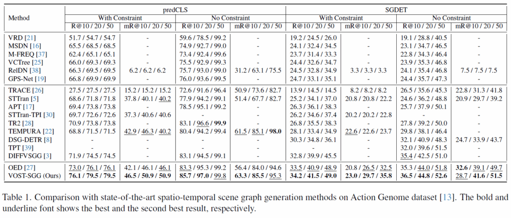 - Action Genome 데이터셋에서의 실험에서 SOTA를 달성해 제안 방법론이 효과적임을 확인하였다.