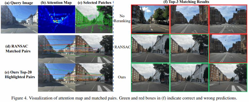 VPR에서는 주로 two stage로 retrival을 진행하는데, 먼저 global retrival과 reranking을 진행합니다. 지금까지의 논문들은 먼저 global retrival로 top N개의 이미지를 먼저 선정하고, 이 이후에 RANSAC와 같은 geometric verification을 진행하는 방식으로 reranking을 진행했습니다. 그러나 R2Former은 geometric한 정보뿐만 아니라 task-relevant information도 사용하여서 reranking을 진행할 수 있다고 얘기하고 있습니다.