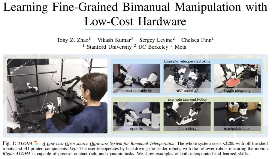 - Authors: Tony Z. Zhao, Vikash Kumar, Sergey Levine, Chelsea Finn